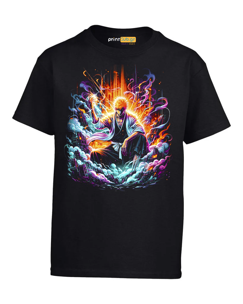 Στην εικόνα απεικονίζεται ο Ichigo Kurosaki, ο κύριος πρωταγωνιστής της σειράς anime και manga Bleach.